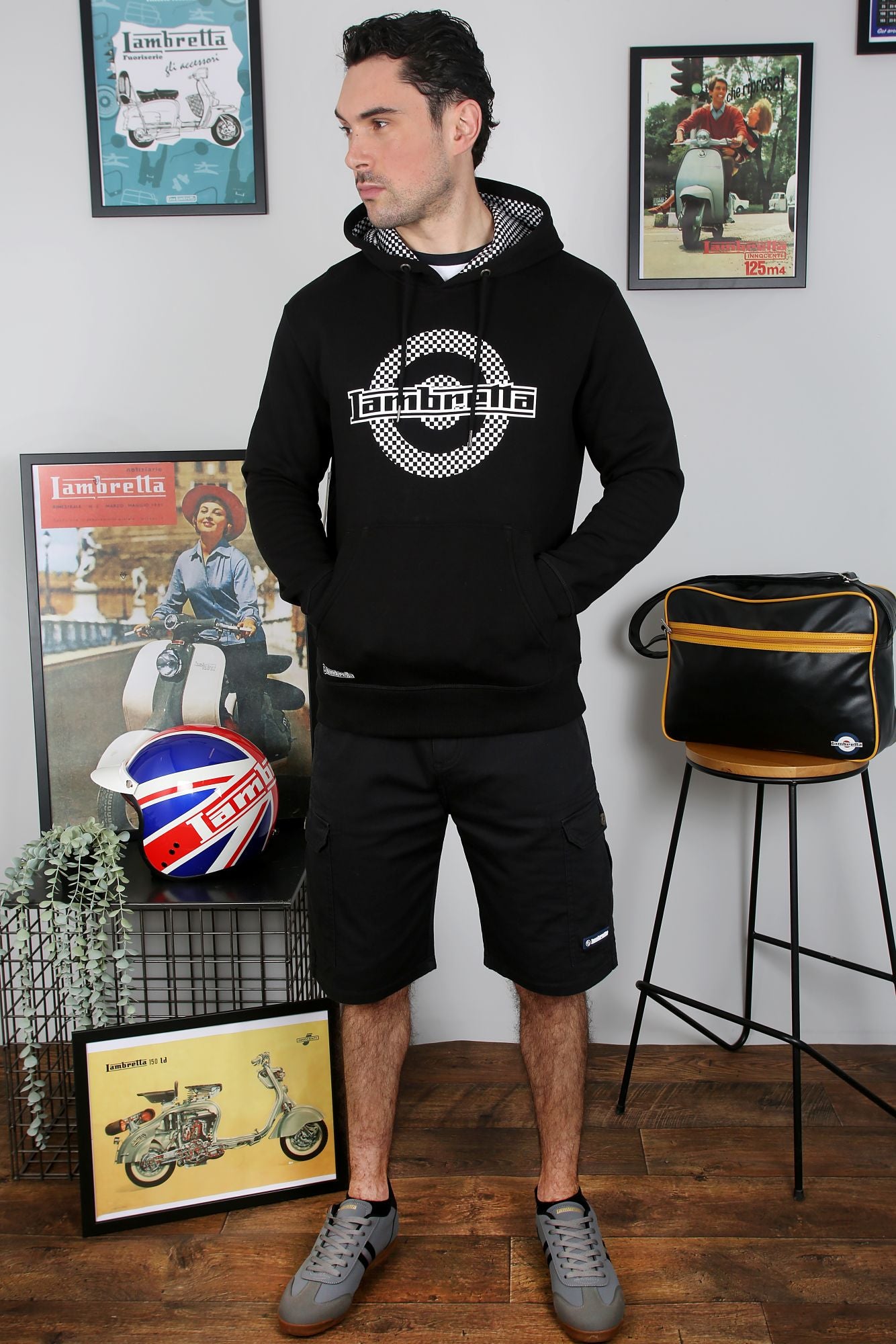 This black Target Hoodie blends heritage style with everyday comfort. Featuring the iconic target logo in a bold checkerboard design across the chest, it delivers a sharp, modern take on classic mod culture. The hoodie includes a drawstring hood with contrast checkerboard hood lining and a practical kangaroo pocket for added functionality. Finished with ribbed cuffs and hem for a comfortable fit, it’s a versatile wardrobe staple that works just as well layered up as it does worn on its own.