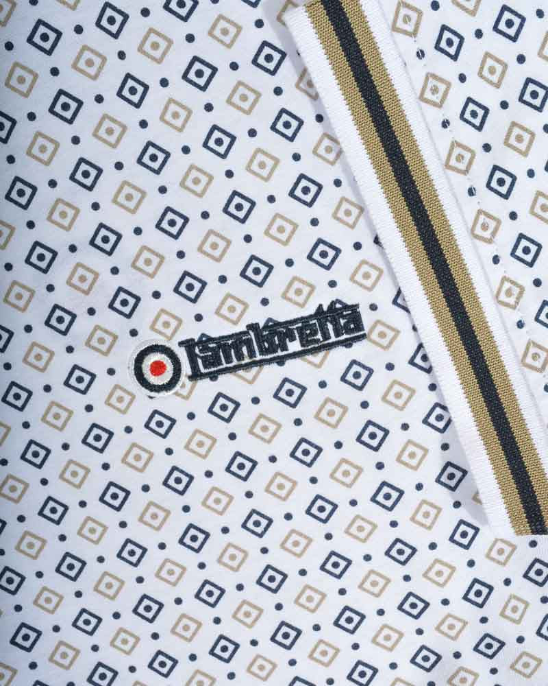 Stand out from the rest with this bold polo featuring an eye-catching geometric print all over. With its tipped collar and sleeve, and embroidered details, this polo is the perfect choice for a casual yet put-together look. Made of 100% cotton, it's both comfortable and high-quality.