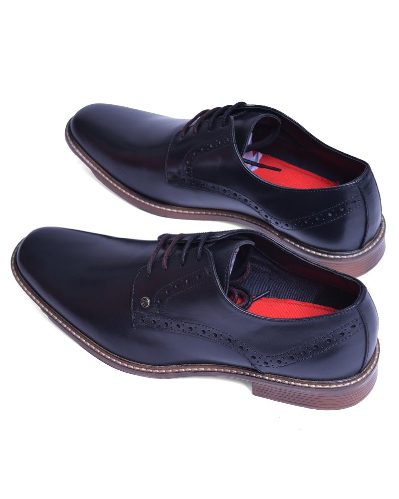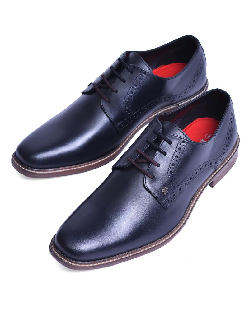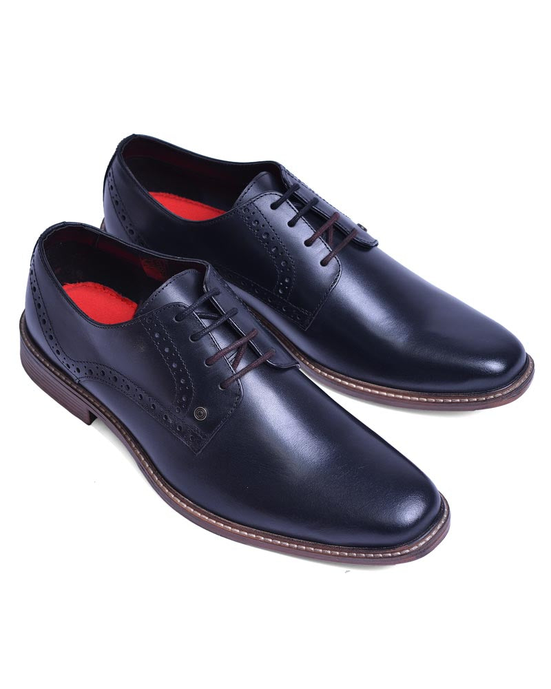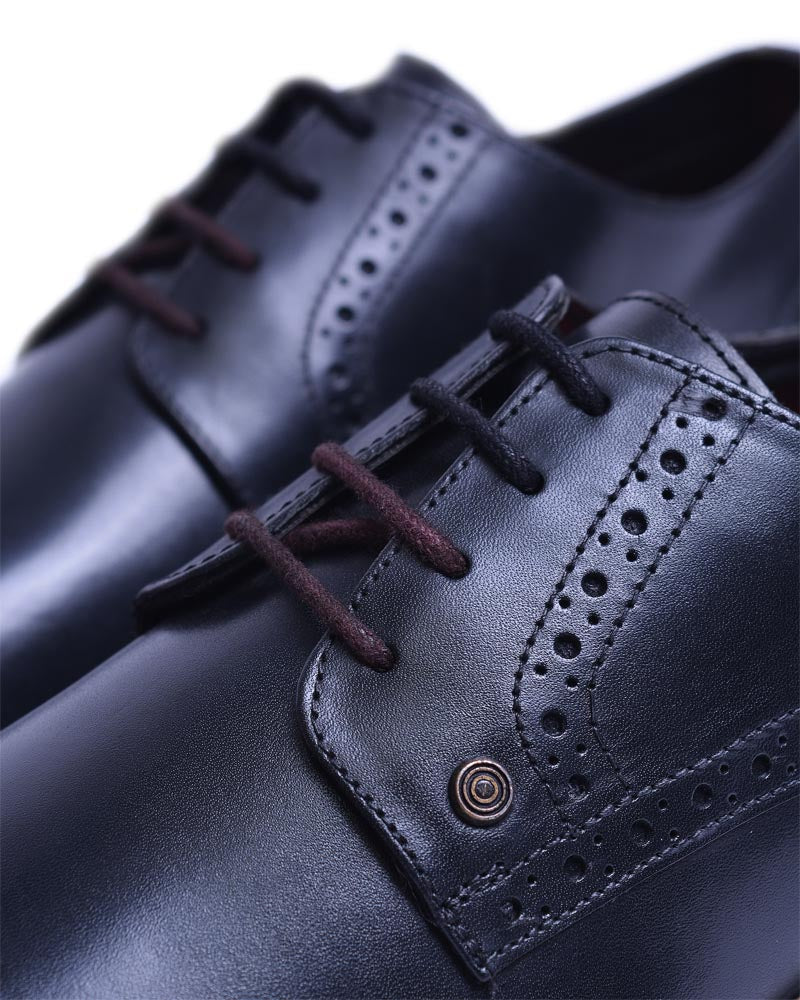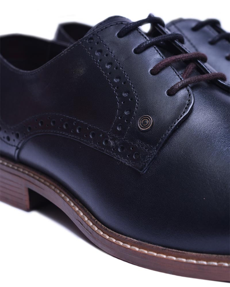 The Harvey Derby combines classic half brogue detailing with a sleek leather upper for a timeless look. Featuring a 4 eyelet lace-up design and a small metal target badge, it offers subtle style with everyday comfort. Perfect for casual wear, these shoes add a touch of refined edge to any outfit.