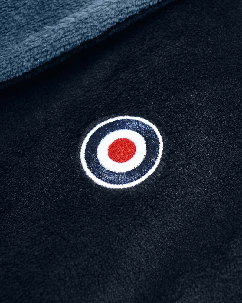 This super-soft fleece dressing gown is perfect for lounging at home. With two side pockets for convenience, a tie belt for a comfortable fit, and a hanging loop for easy storage. The contrast collar and cuffs add a touch of style, while the target chest embroidery and text embroidery on the pocket make it unique. Knee length for extra coverage.