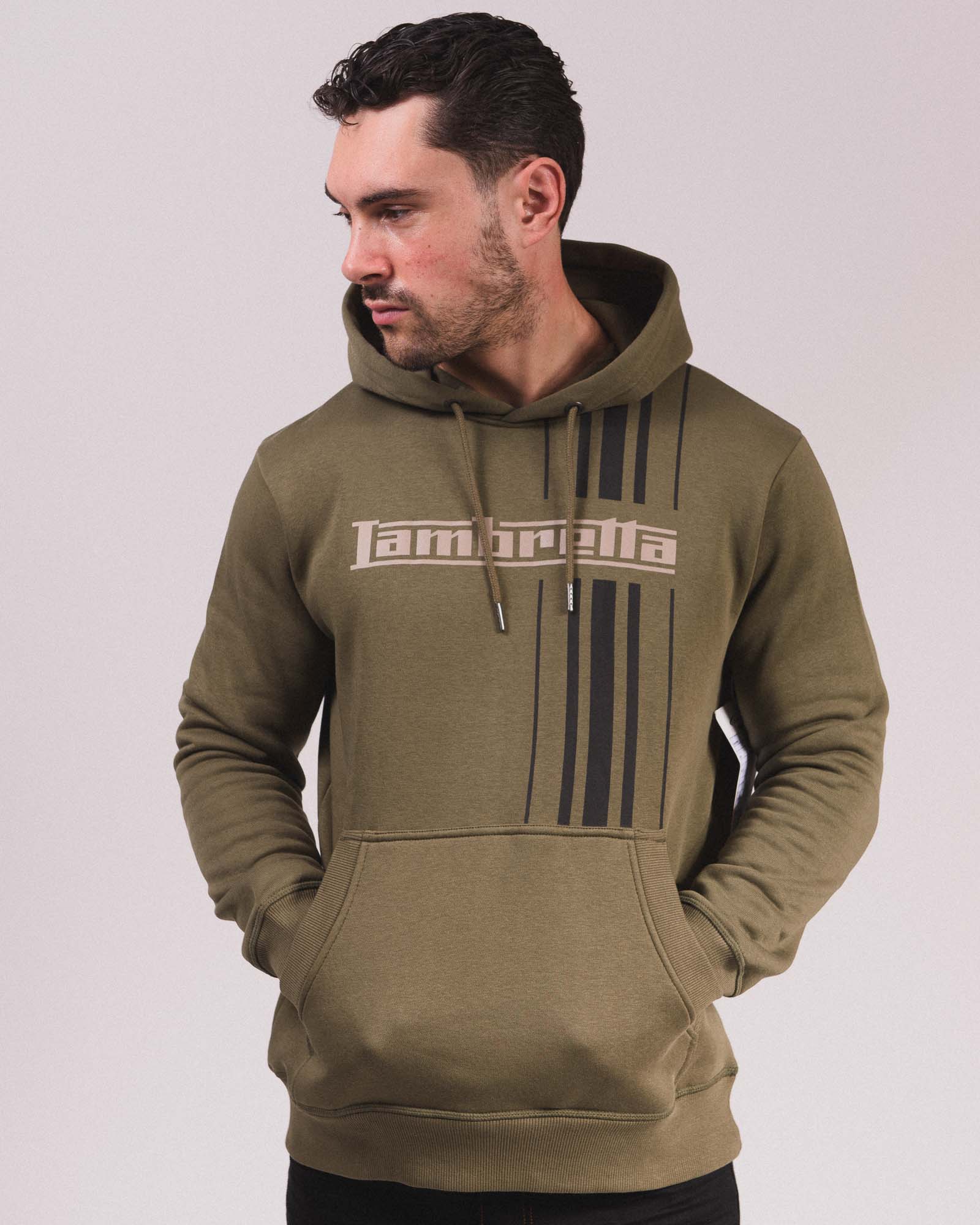 Made from loopback fabric this everyday hoodie features a graphic print which takes inspiration from the popular racing stripes used on scooters, making it a firm favourite for Lambretta fans.